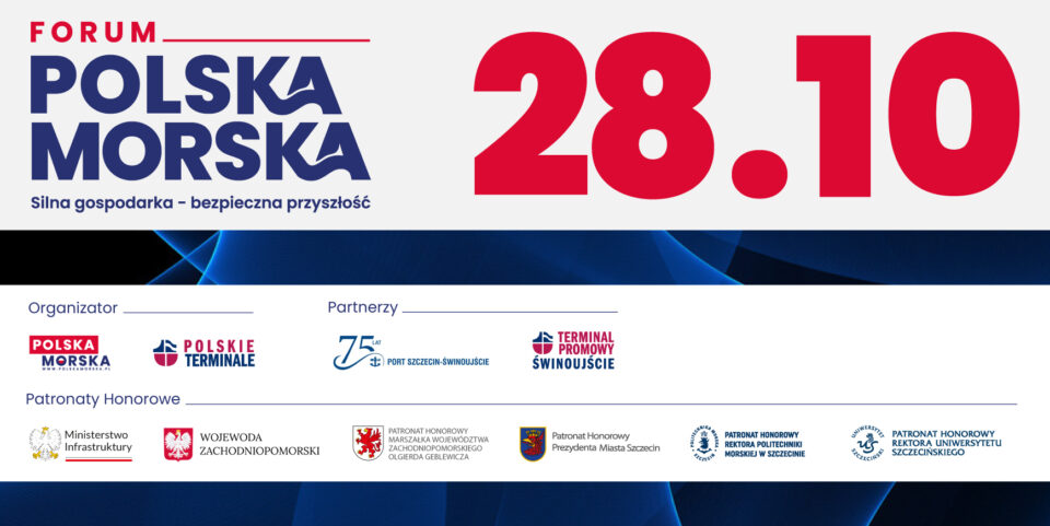 28 października w Morskim Centrum Nauki w Szczecinie odbędzie się pierwsza edycja Forum Polska Morska. Będzie to konferencja poświęcona strategicznym kierunkom rozwoju gospodarki morskiej oraz bezpieczeństwu infrastruktury krytycznej. W wydarzeniu wezmą udział przedstawiciele administracji publicznej, biznesu i sektora stoczniowego, w tym wiceminister infrastruktury Arkadiusz Marchewka.
